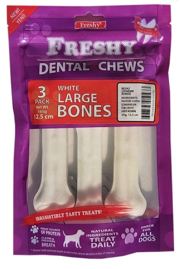 - ÜRÜN BİLGİLERİ: Freshy Dental Large Bones, köpeğinize uzun süreli çiğneme keyfi sunar