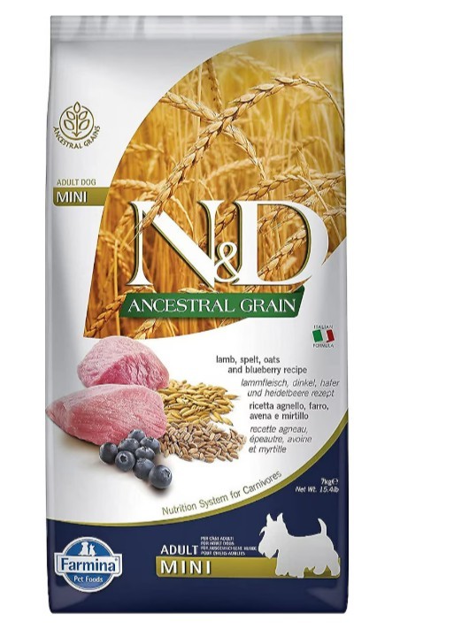 N&D Ancestral Grain Düşük Tahıllı Kuzu Etli ve Yaban Mersinli 7 kg Küçük Irk Yetişkin Köpek Maması