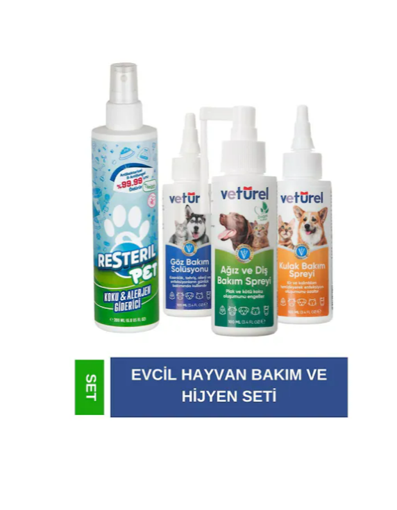 Resteril Kedi Koku Giderici Sprey 200 ML + Ağız Göz Kulak Temizleme Köpek Kedi Bakım Seti 3 x 100 ML
