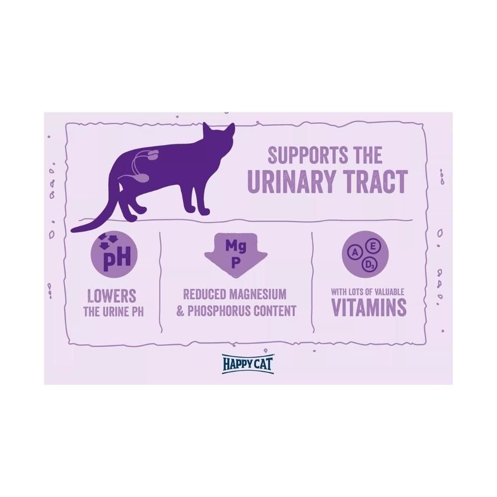 Happy Cat Minkas Urinary Care yüksek sindirilebilirliğe sahip protein ve düşük magnezyum, fosfor oranları ile idrar Ph’ını düşürerek üriner sistem hastalıklarının önlenmesine yardımcı olur.