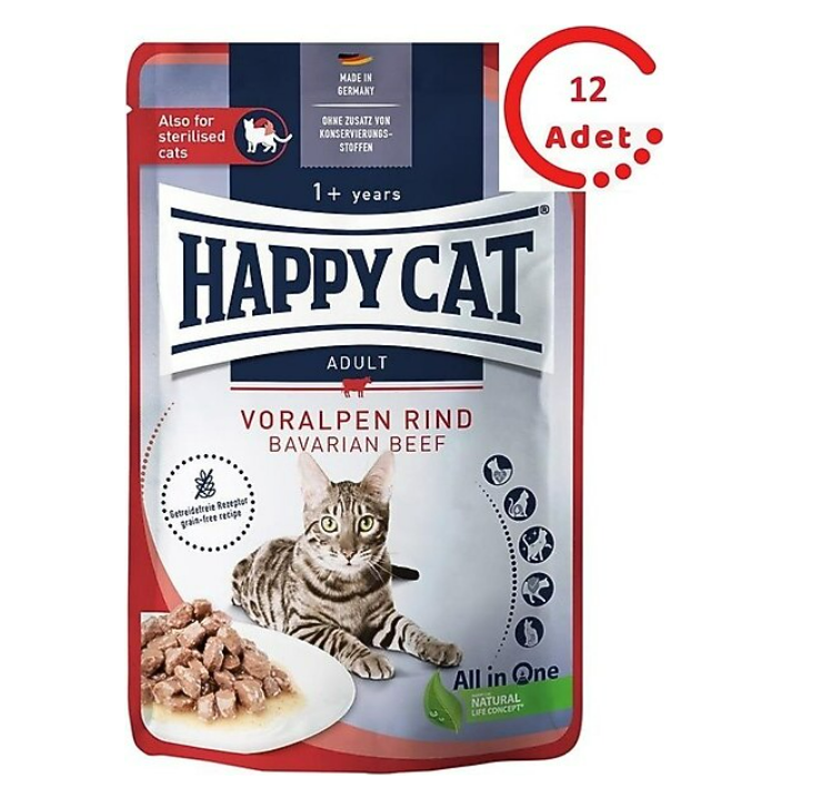 Happy Cat Sığır Etli Tahılsız Yetişkin Kedi Konservesi 85 gr 12 Adet