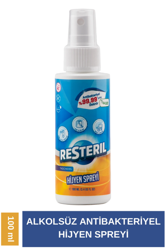 Resteril Hijyen Spreyi 100 - 200-1000 Resteril, evdeki hijyeni yanından ayırmak istemeyen herkes için kusursuz dezenfektan spreyi geliştirdi. Gerçek hijyeni zararlı kimyasallara başvurmadan sağlayan Resteril Hijyen Spreyi adete bir cep sterilizatörü. Klavye, mouse, telefon ekranı gibi yüzeylerden toplu taşımada temas edeceğiniz alanlara, restoranlardaki çatal-bıçak ve menülerden, ortak alan tuvaletlerine dek hep sizinle. Gücünü bilimden alan bu sprey kolay taşınabilir hacim seçenekleri ile tüm yüzeylerde durulama gerektirmeyen etkin sterilizasyon sağlar. Alkolsüz formülüyle Bakteri ve Mantarların %99.99’unu saniyeler içinde yok eder.